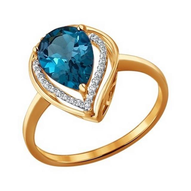 Кольцо из красного золота с топазом и фианитами (027827)