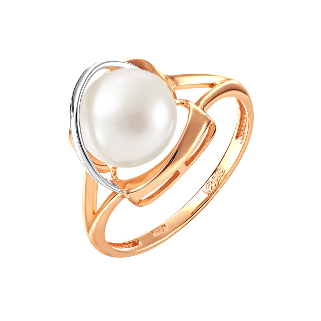Кольцо из красного золота с жемчугом (041479)