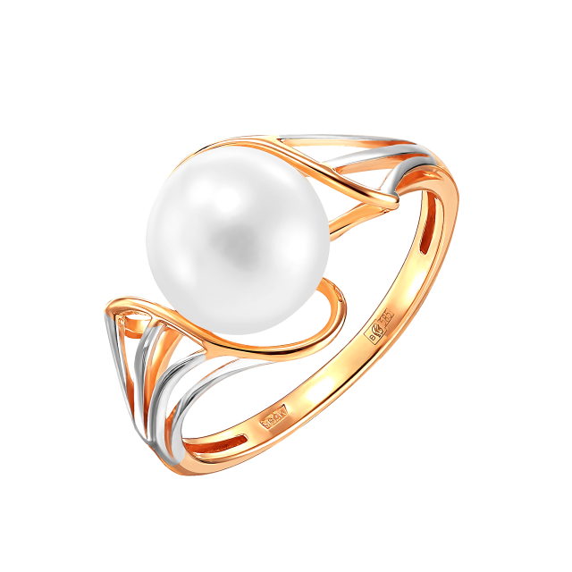 Кольцо из белого золота с бриллиантами и жемчугом (021201)