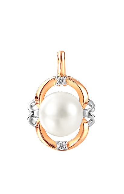 Кулон из красного золота с жемчугом и фианитами (041621)