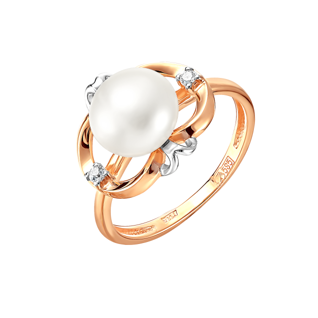 Кольцо из красного золота с жемчугом и фианитами (041619)
