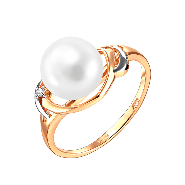 Кольцо из красного золота с жемчугом и фианитом (041632)