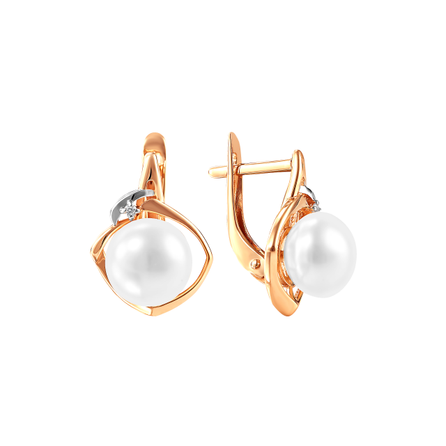 Серьги из красного золота с жемчугом и фианитами (041633)