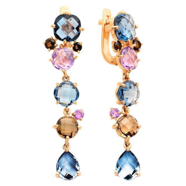 Серьги из красного золота с аметистами, топазами и раухтопазами (041527)