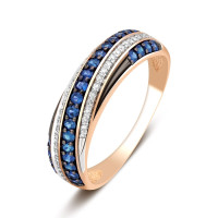 Кольцо из красного золота с синтетическим сапфиром и фианитами (038336)
