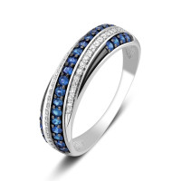 Кольцо из белого золота с бриллиантами и сапфиром (053845)