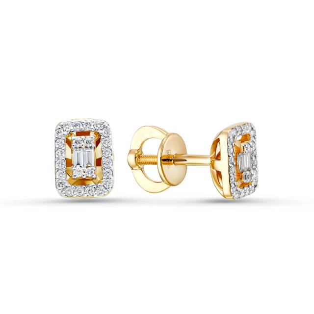 Серьги пусеты из жёлтого золота с бриллиантами (060873)