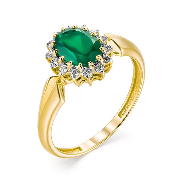 Кольцо из жёлтого золота с бриллиантами и агатом (039499)