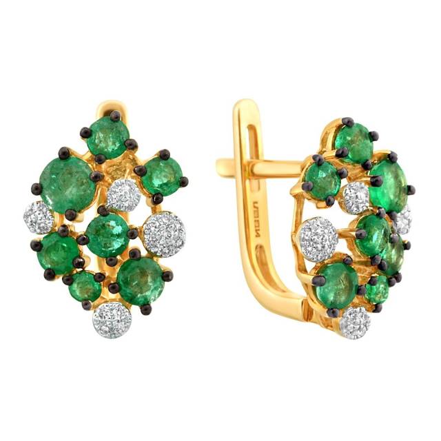 Серьги из жёлтого золота с бриллиантами и изумрудами (015253)