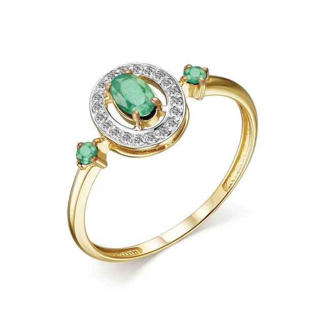 Кольцо из жёлтого золота с бриллиантами и изумрудами (047124)