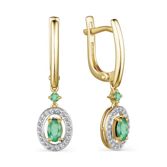 Серьги из жёлтого золота с бриллиантами и изумрудами (047131)