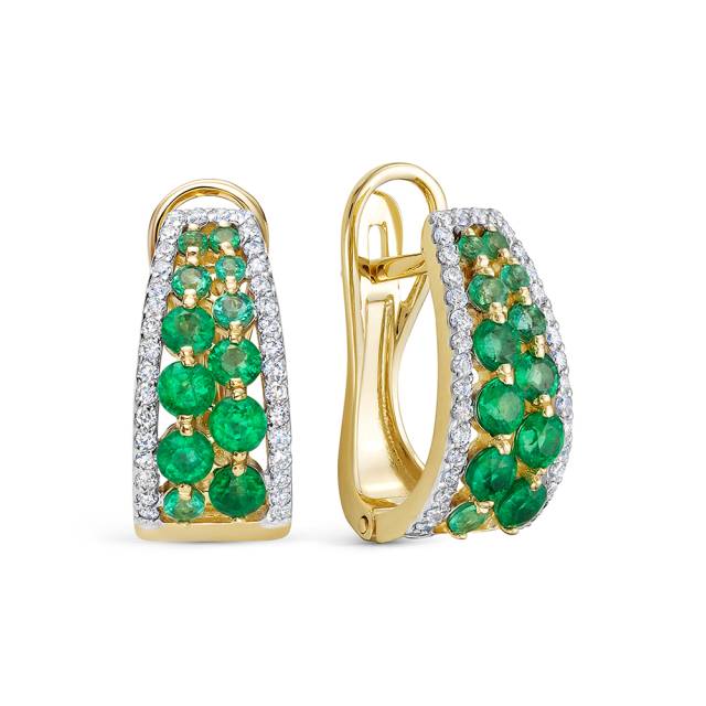 Серьги из жёлтого золота с бриллиантами и изумрудами (054791)