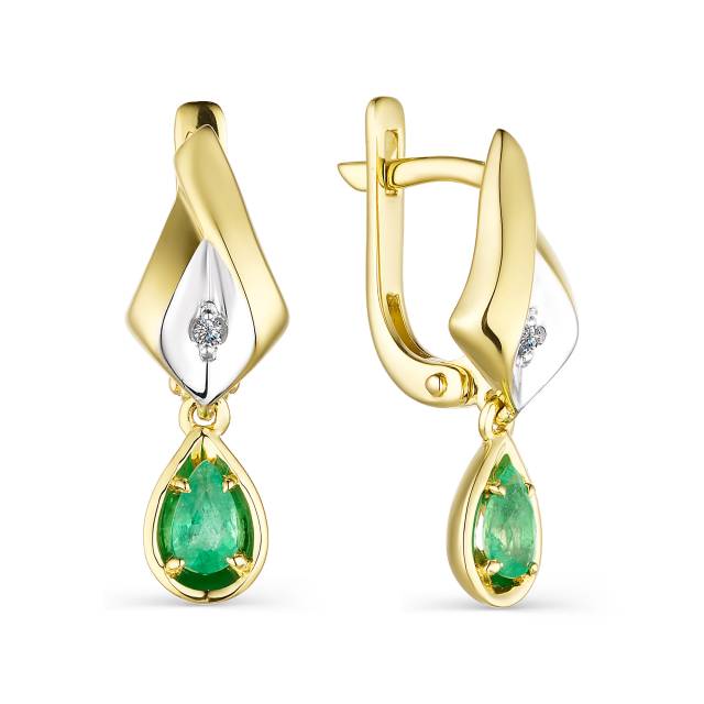 Серьги из жёлтого золота с бриллиантами и изумрудами (041887)