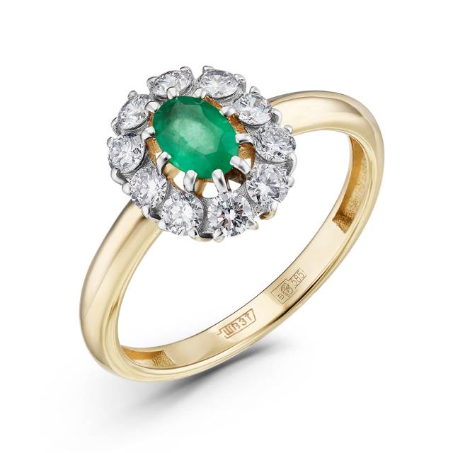 Кольцо из жёлтого золота с бриллиантами и изумрудом (051144)