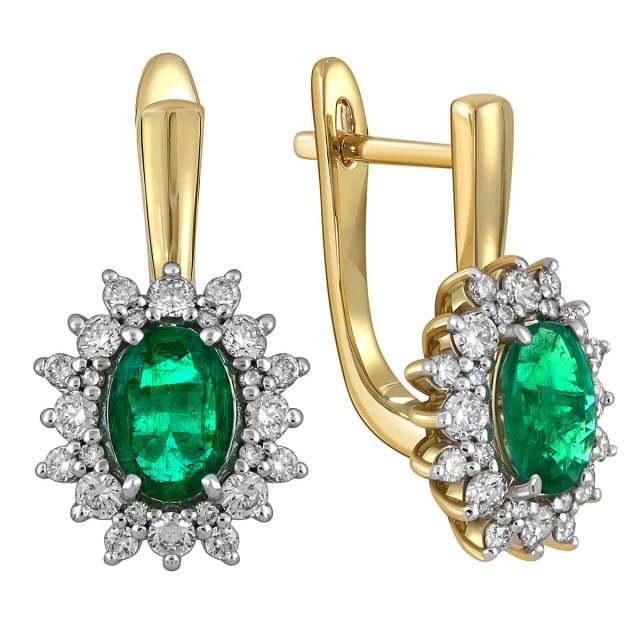 Кольцо из жёлтого золота с бриллиантами и изумрудом (055677)