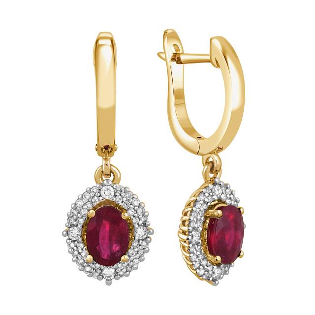 Серьги из жёлтого золота с бриллиантами и рубинами (046182)