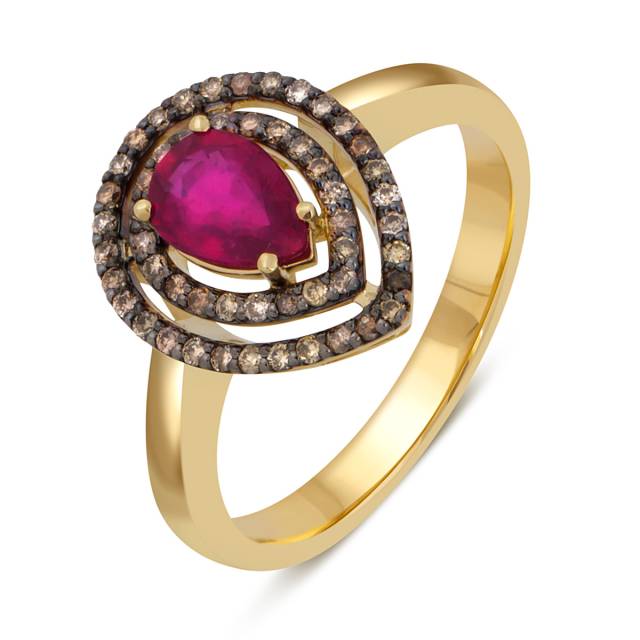 Кольцо из жёлтого золота с бриллиантами и рубином (046180)