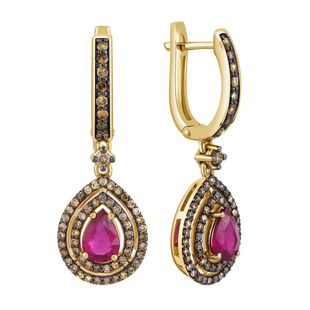 Серьги из жёлтого золота с бриллиантами и рубинами (046181)