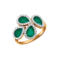 Кольцо из жёлтого золота с бриллиантами и зелёными агатами (030655)