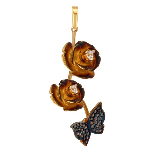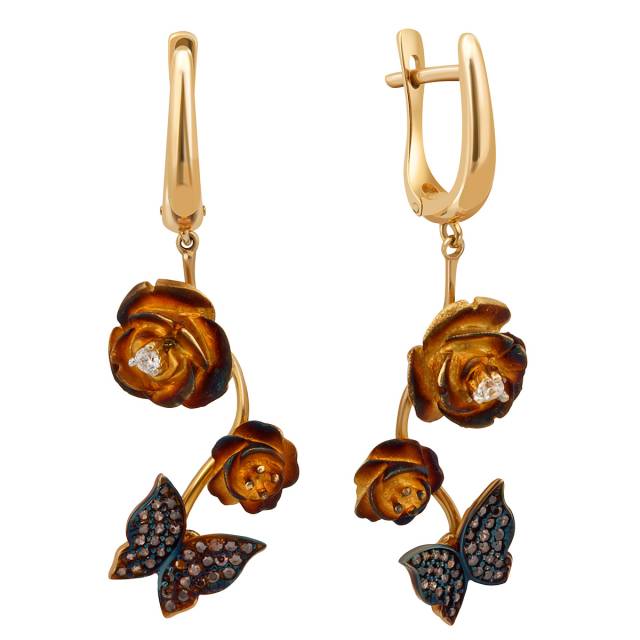 Серьги из жёлтого золота с цирконами и эмалью (012096)
