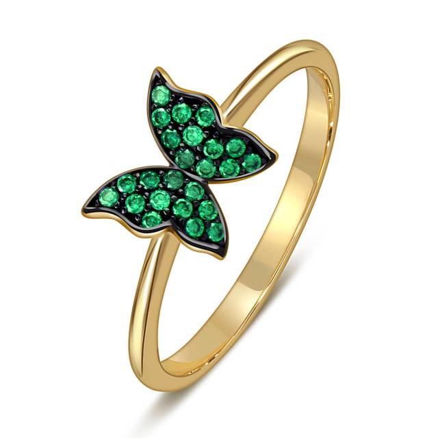 Кольцо из жёлтого золота с фианитами "Бабочка" (057954)