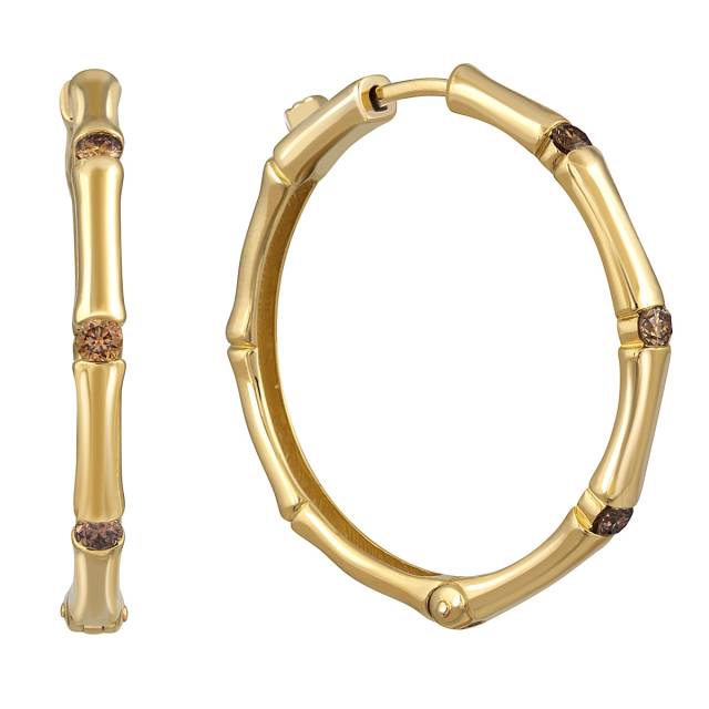 Серьги конго из жёлтого золота с коньячными бриллиантами (053804)