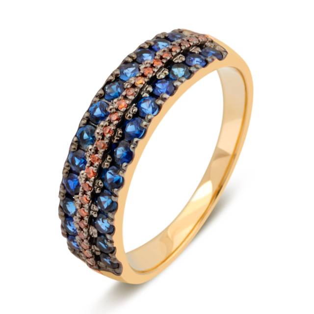 Кольцо из жёлтого золота с розовыми бриллиантами и сапфирами (035444)