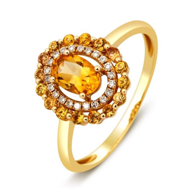 Кольцо с бриллиантами и цитринами (010718)