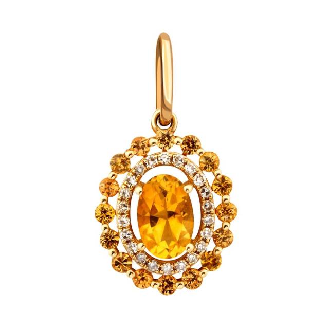 Кулон из жёлтого золота с бриллиантами и цитринами (010696)