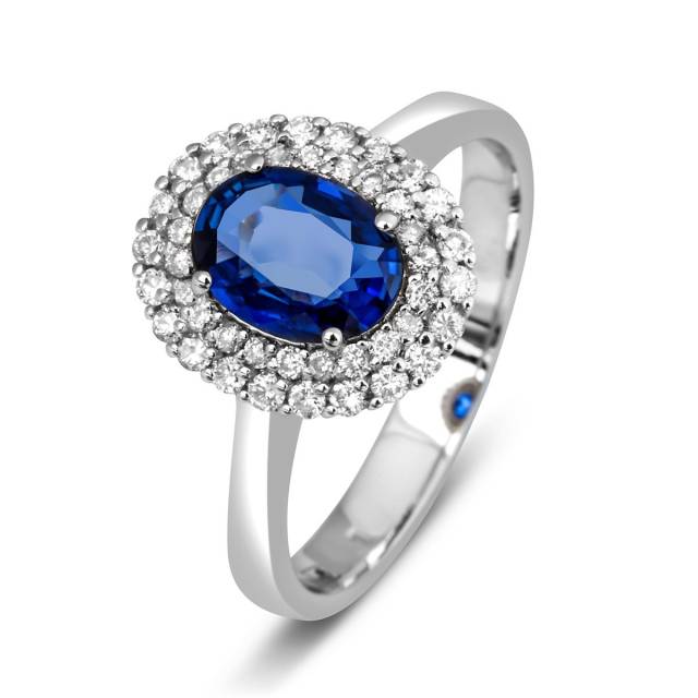 Кольцо с сапфиром и бриллиантами из белого золота (014160)