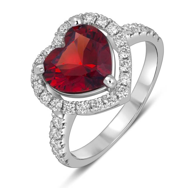 Помолвочное кольцо из белого золота с бриллиантами и гранатом "Сердце" (060135)