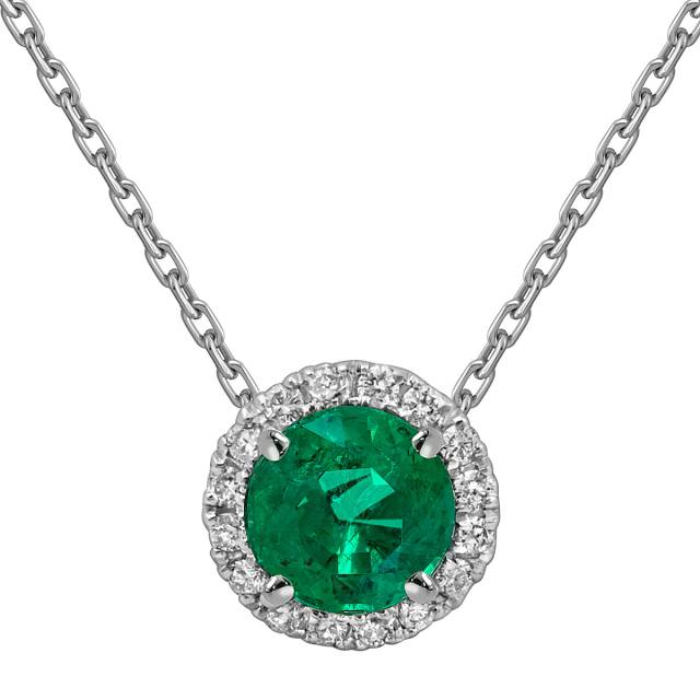 Колье из белого золота с бриллиантами и изумрудом (052502)