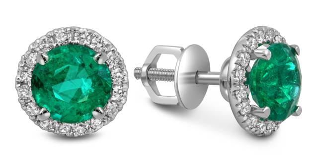 Серьги пусеты из белого золота с бриллиантами и изумрудами (052500)