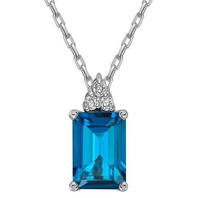 Колье из белого золота с бриллиантами и лондон топазом (059395)