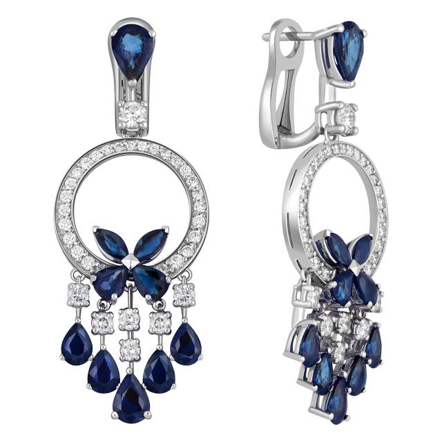 Серьги из белого золота с бриллиантами и сапфирами (040900)