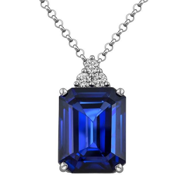 Колье из белого золота с бриллиантами и сапфиром (053291)