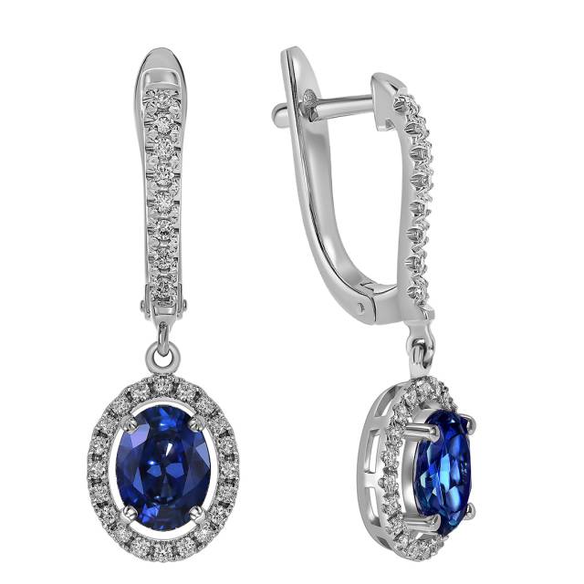 Серьги из белого золота с бриллиантами и сапфирами (060545)