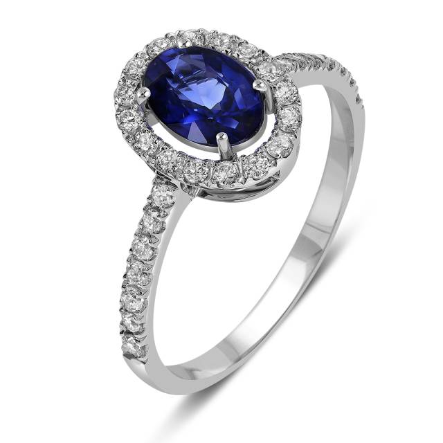 Кольцо из белого золота с бриллиантами и сапфиром (061132)