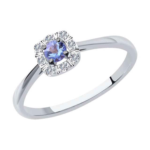 Колье из белого золота с бриллиантами и танзанитом (046414)