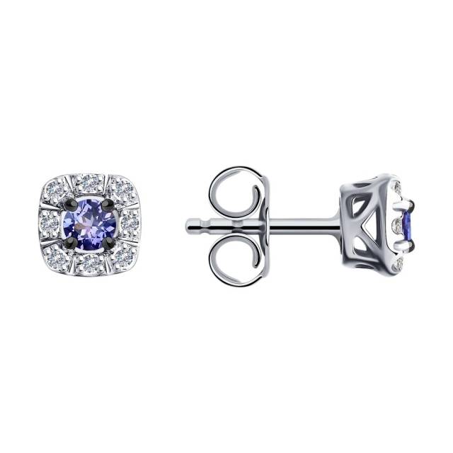 Серьги пусеты из белого золота с бриллиантами и танзанитами (046764)