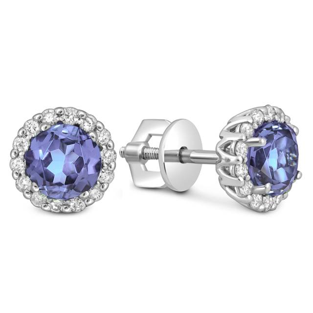 Серьги пусеты из белого золота с бриллиантами и танзанитами (055653)