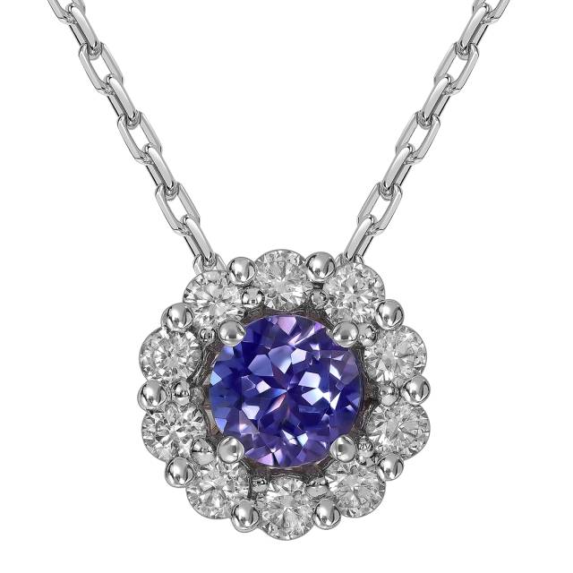 Колье из белого золота с бриллиантами и танзанитом (061612)