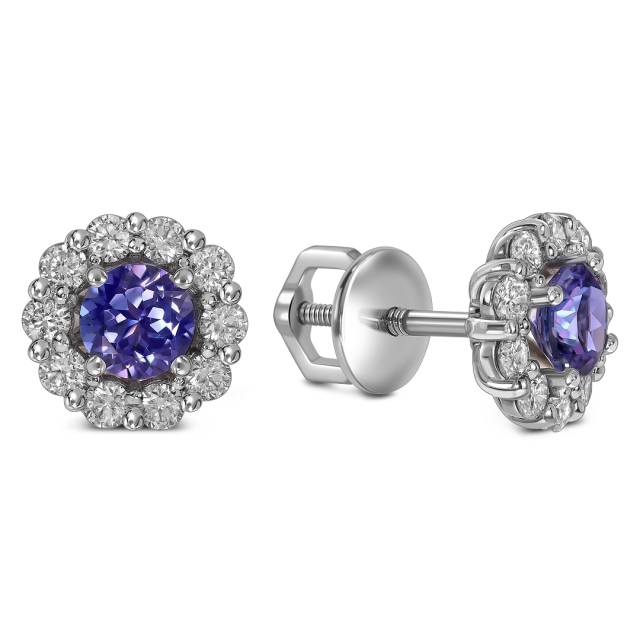 Серьги пусеты из белого золота с бриллиантами и танзанитами (062956)