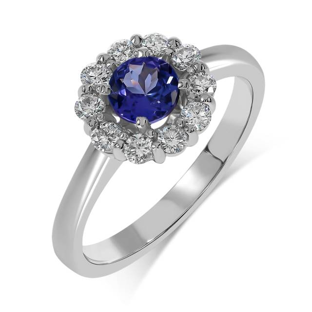 Кольцо из белого золота с бриллиантами и танзанитом (062665)