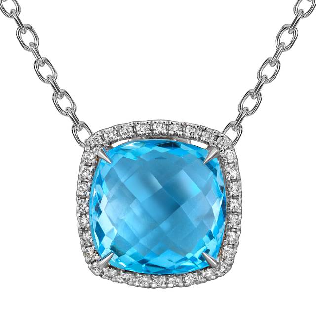 Колье из белого золота с бриллиантами и сапфиром (036556)