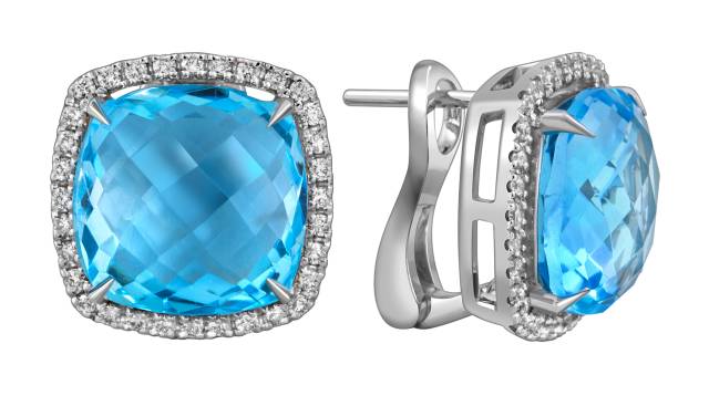 Серьги из белого золота с бриллиантами и топазом (055058)