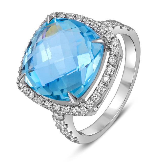 Кольцо из белого золота с бриллиантами и топазом (055054)