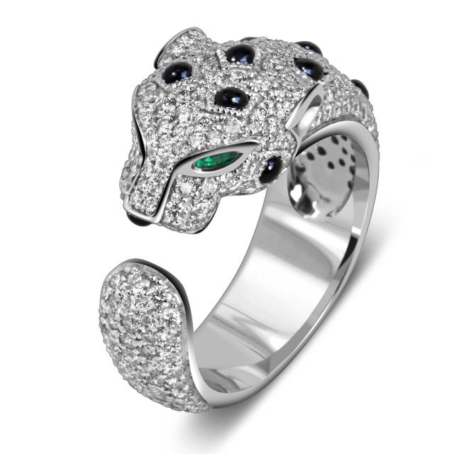 Кольцо из белого золота с бриллиантами, ситаллами и ониксами (060527)