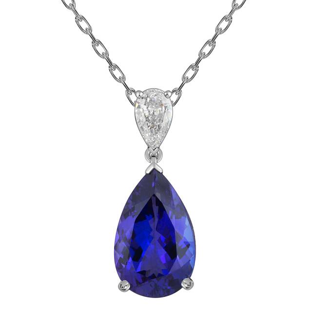 Колье из белого золота с бриллиантом и танзанитом (054835)