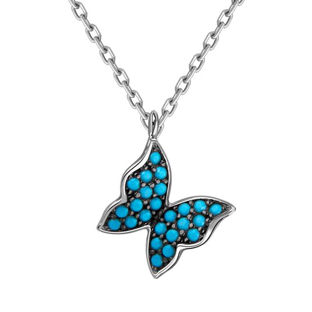 Колье из белого золота с фианитами "Бабочка" (057885)